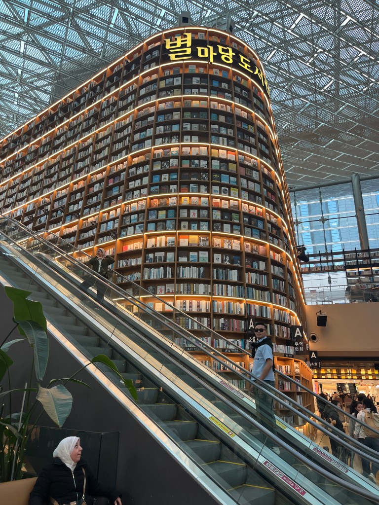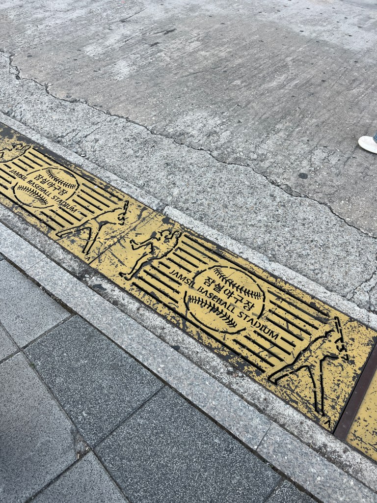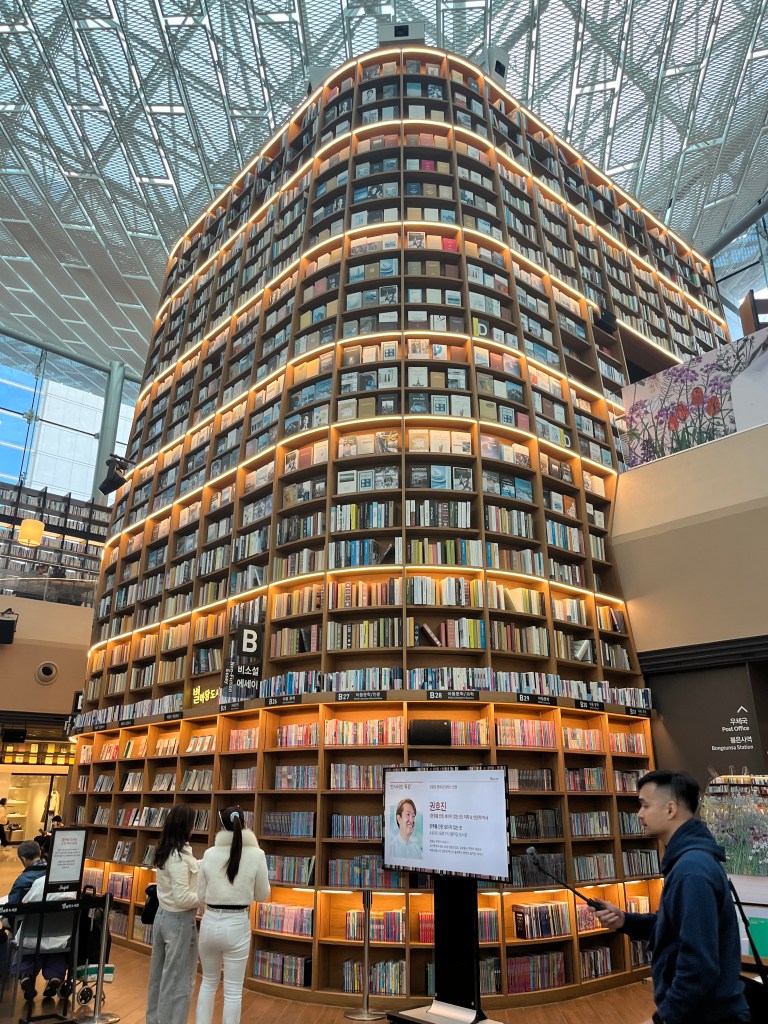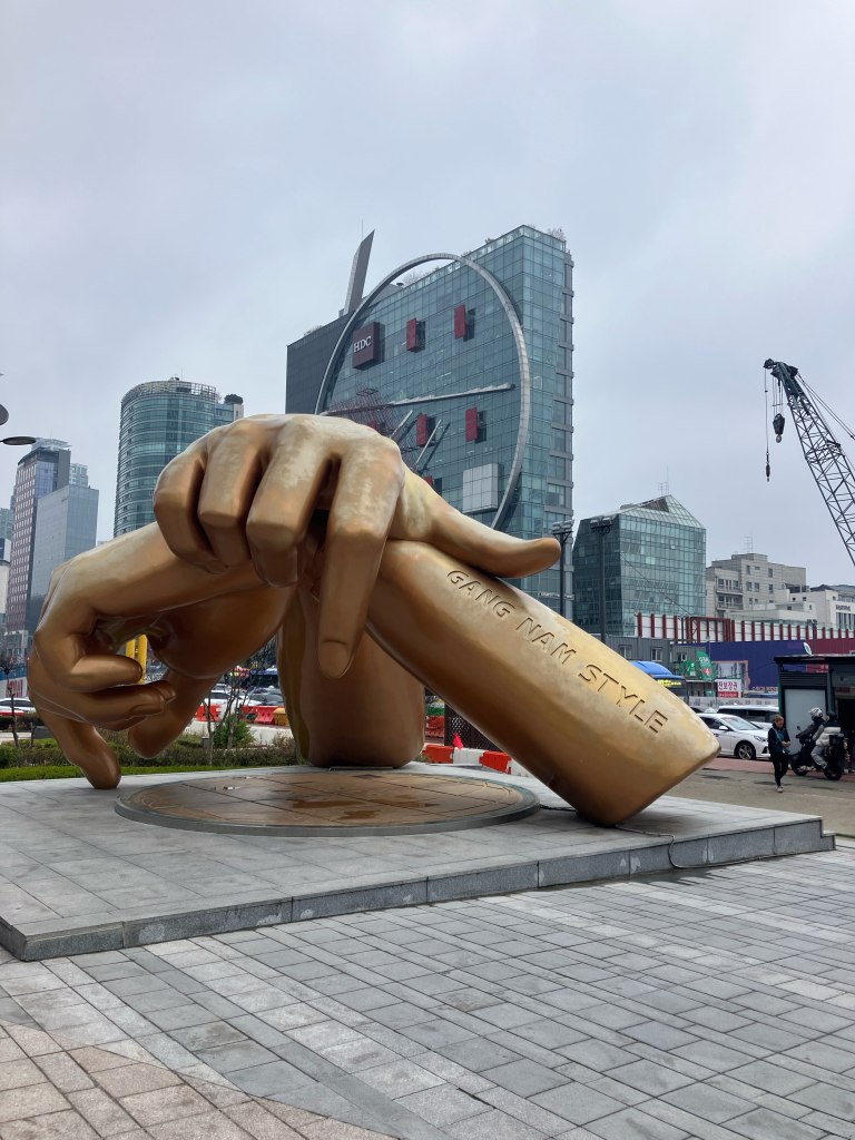 Then we hoped on the train (public transportation is very easy, clean and cheap in Seoul) and headed over to the Jamsil Olympic Stadium. You cannot go in, but Luisa wanted to see the outside because of the movie. Right next door is a baseball stadium which happened to be filling up for game, which was fun to see. From there we walked to the Starfield Coex Mall, famous for its library (so beautiful!) and a giant bronze statue of PSY’s hands in the pose of the dance (“Gangnam Style“). We also enjoyed wandering the mall and even found a Jamba Juice!!