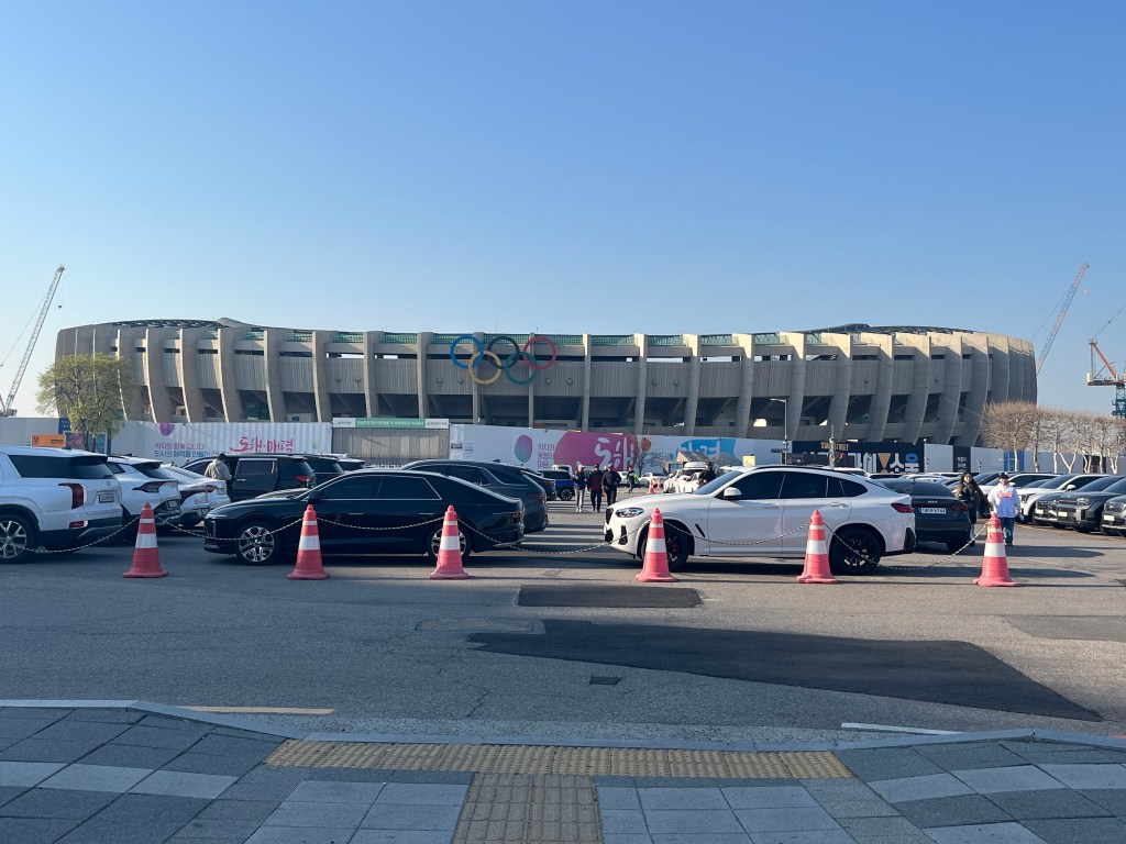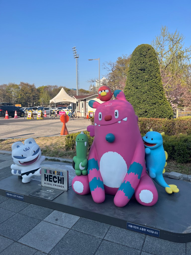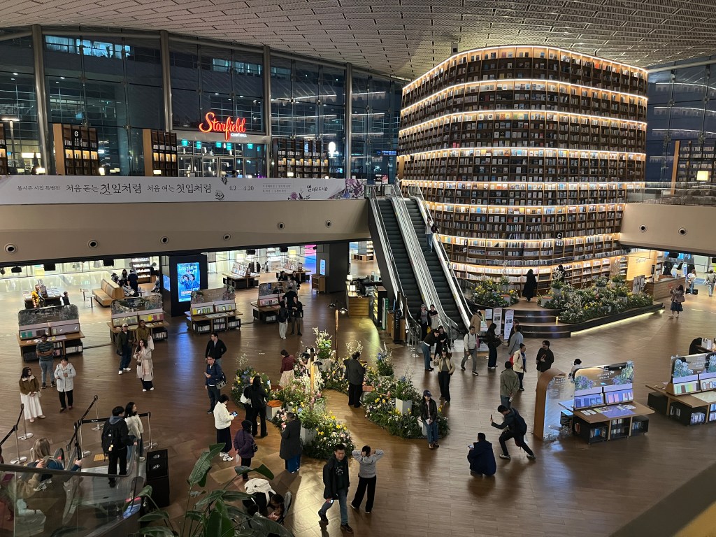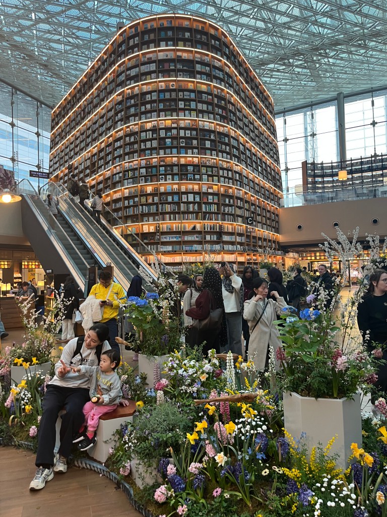 Then we hoped on the train (public transportation is very easy, clean and cheap in Seoul) and headed over to the Jamsil Olympic Stadium. You cannot go in, but Luisa wanted to see the outside because of the movie. Right next door is a baseball stadium which happened to be filling up for game, which was fun to see. From there we walked to the Starfield Coex Mall, famous for its library (so beautiful!) and a giant bronze statue of PSY’s hands in the pose of the dance (“Gangnam Style“). We also enjoyed wandering the mall and even found a Jamba Juice!!