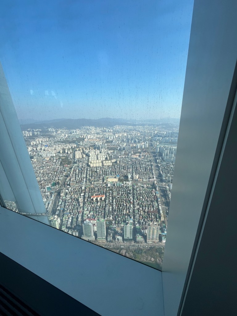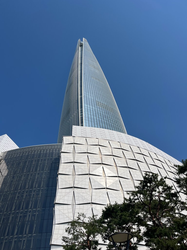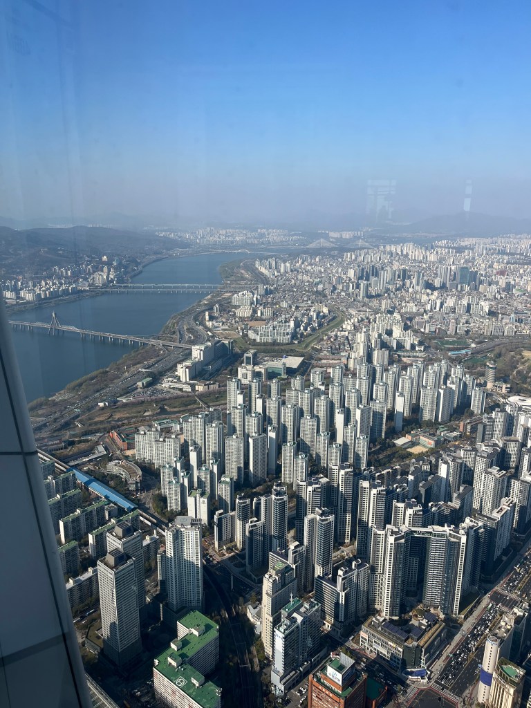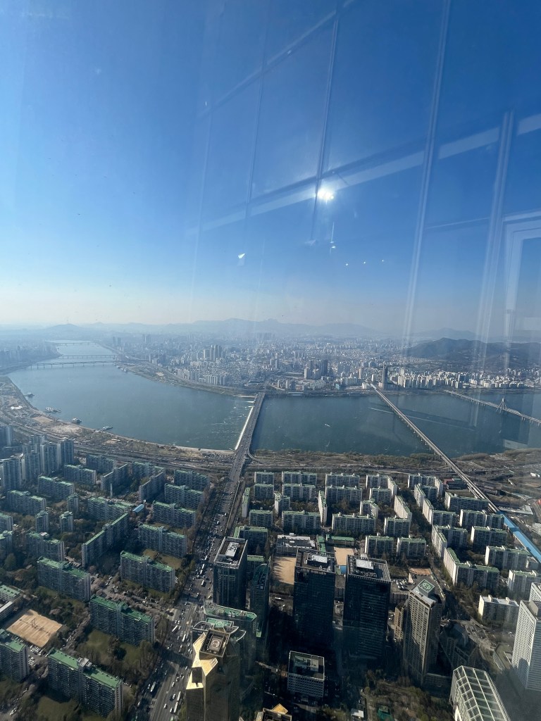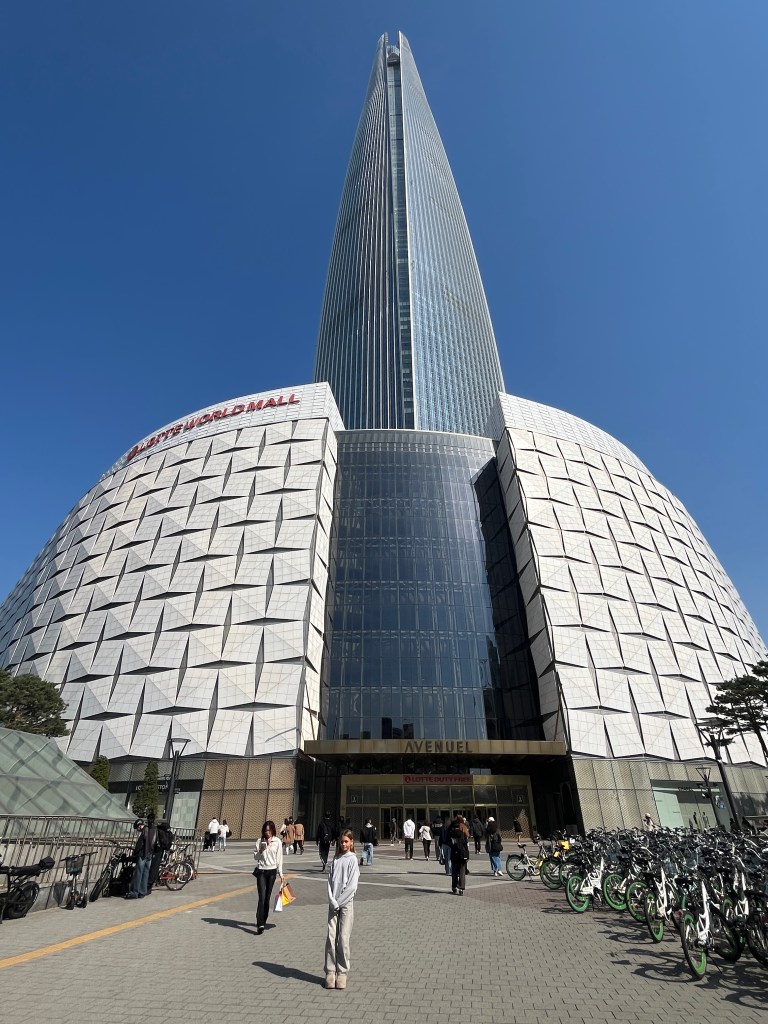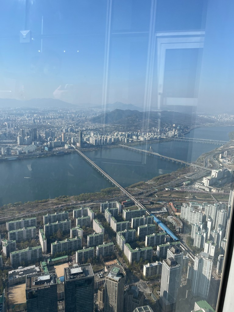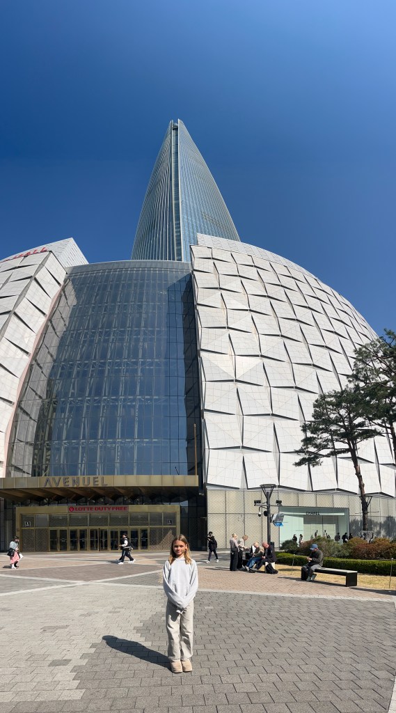 The next day, after school in the morning, the girls and I headed out to track down a few spots from K-Pop Demon Hunters (Luisa’s current obsession). We took the train over the bridge with some beautiful views to Lotte World Tower, the sixth tallest building in the world.