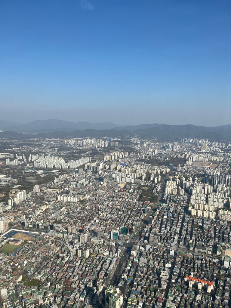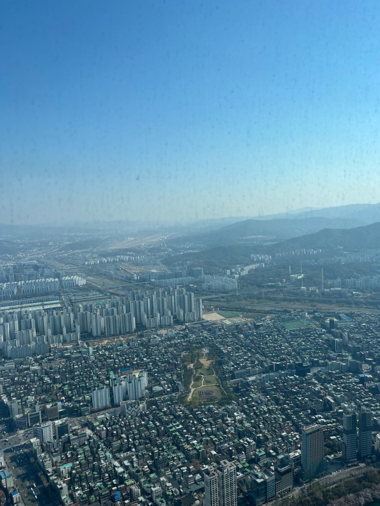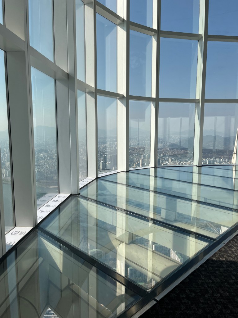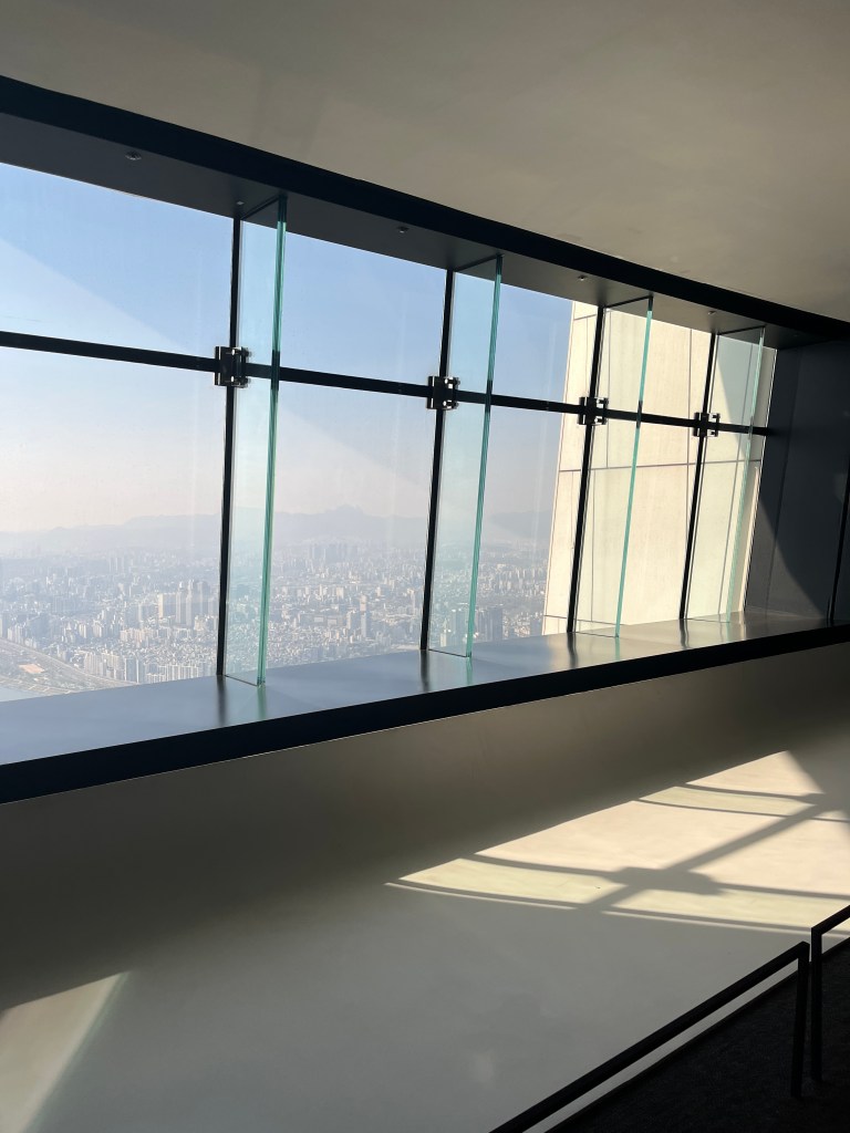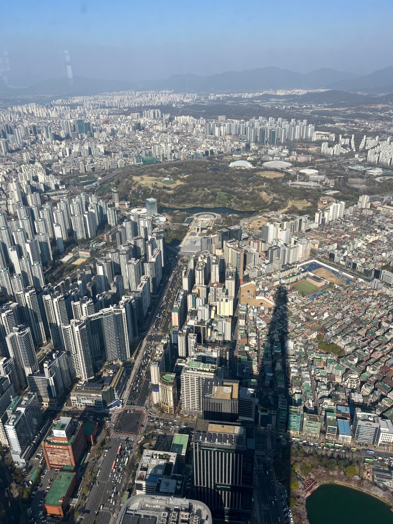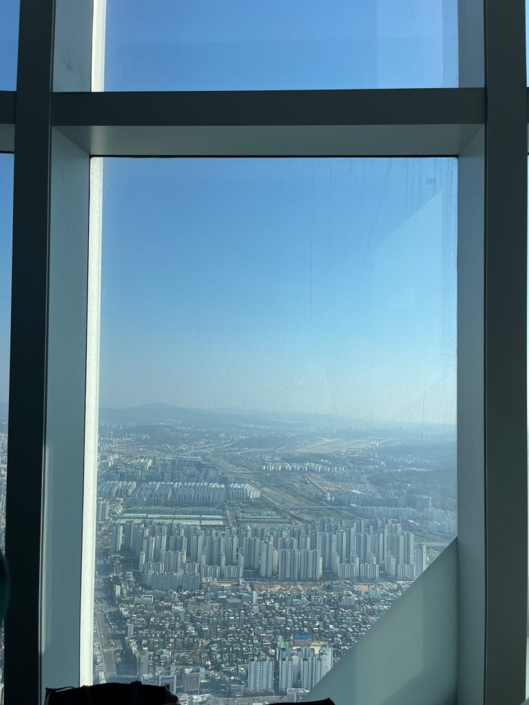 The next day, after school in the morning, the girls and I headed out to track down a few spots from K-Pop Demon Hunters (Luisa’s current obsession). We took the train over the bridge with some beautiful views to Lotte World Tower, the sixth tallest building in the world.