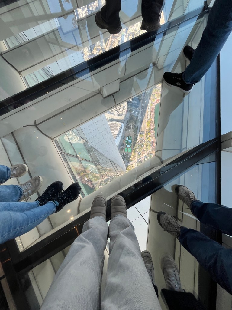 We went up, up, up and the views were incredible! I love seeing everything in miniature. When we exited the elevator (at floor 117) into an auditorium that played a video before opening to reveal the view. It was pretty cool! We wandered around, slowly making our way up to floor 123 (499 m; 1,637 ft) where we then took the elevator back down.