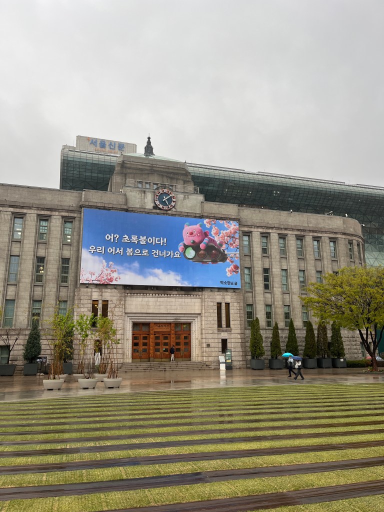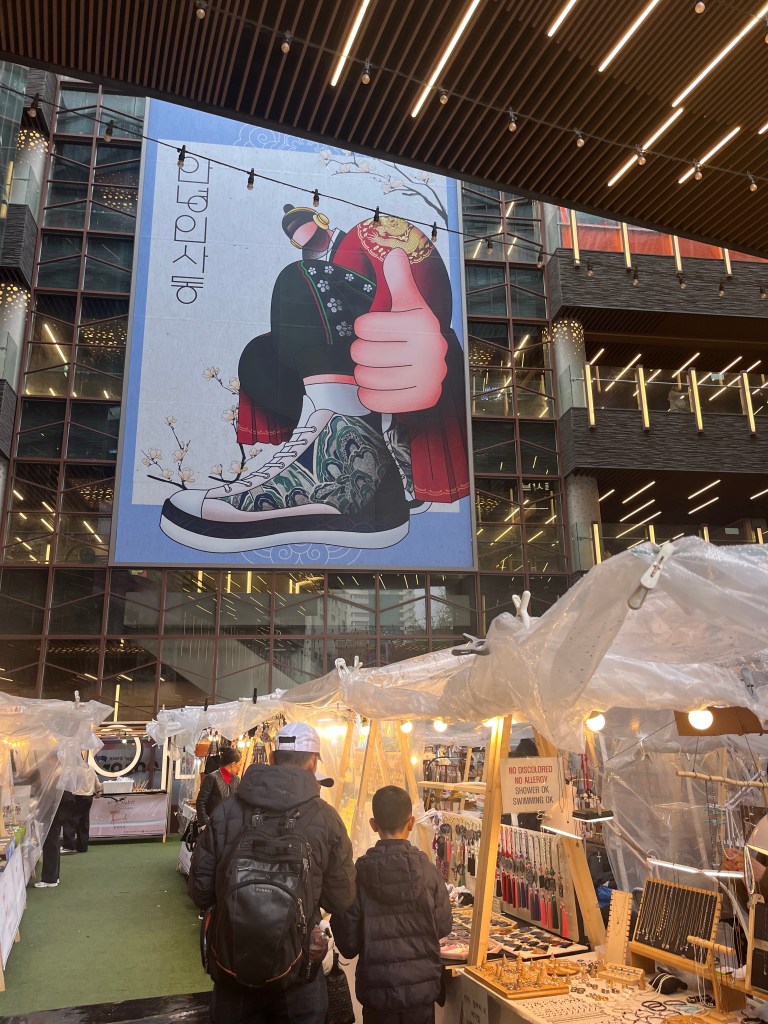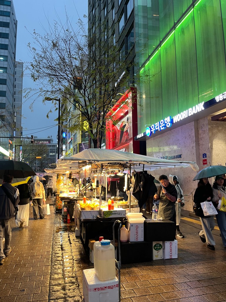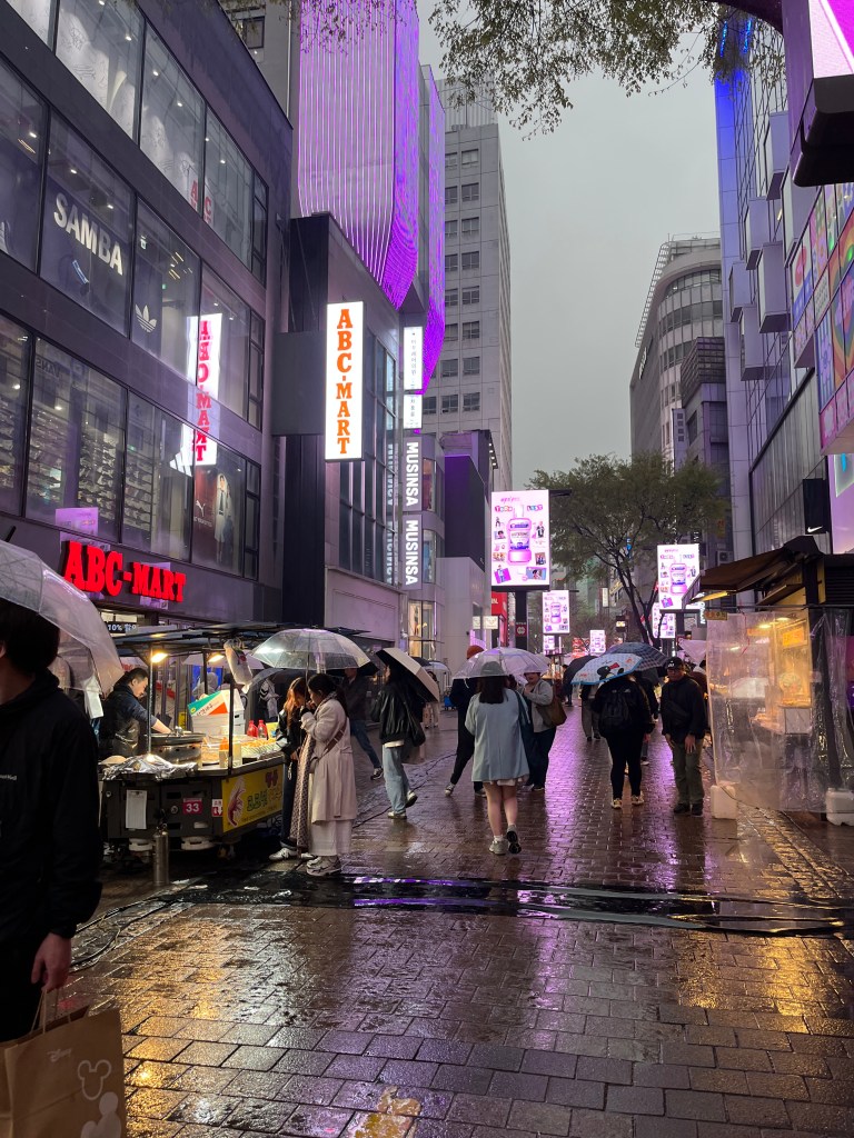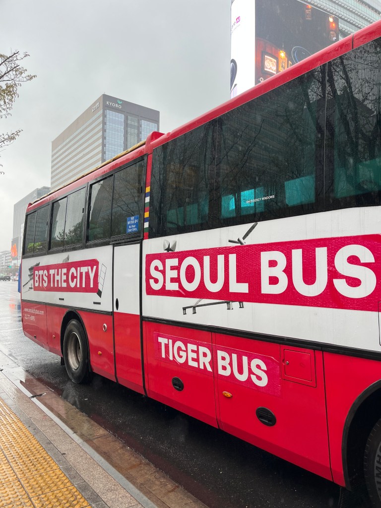 The next day was Thursday, and we woke up to winter. After school we went on a hop on hop off bus tour with a BTS theme with high hopes. Unfortunately, the hopes were quickly dashed. Due to the rain we couldn’t see anything, and the tour was not at all informative. They just played the same few songs and announced the names of the stops. No mention of the cultural or historical significance of any place and no tie in with BTS whatsoever. Due to it being late in the day, we couldn’t get off at any stops because we were on the last bus of the day. Also, did I mention it was pouring rain and cold? So we didn’t really want to get off anyways! It was a bust!