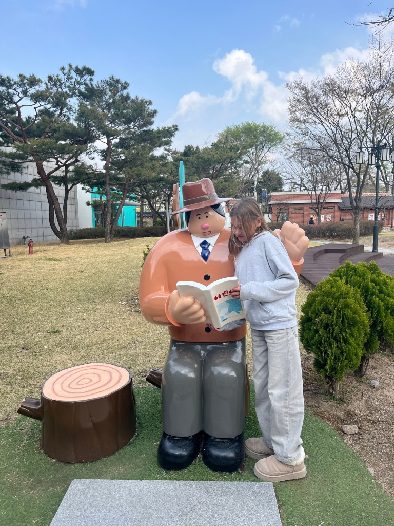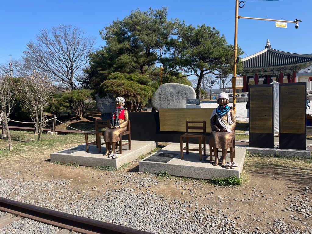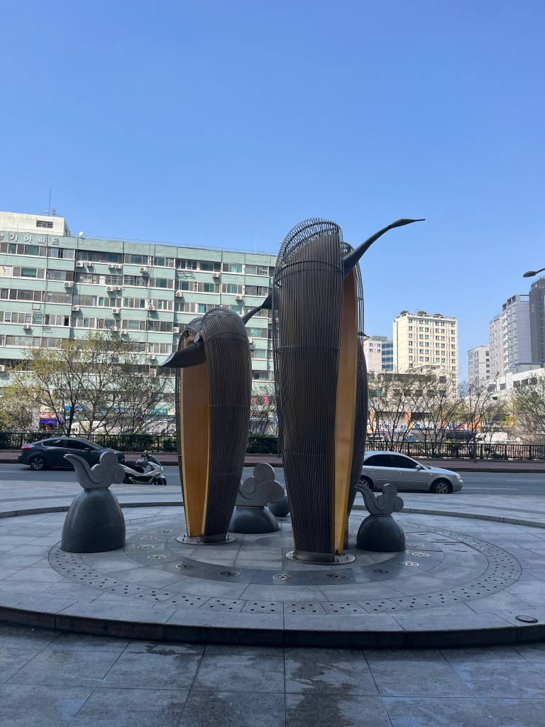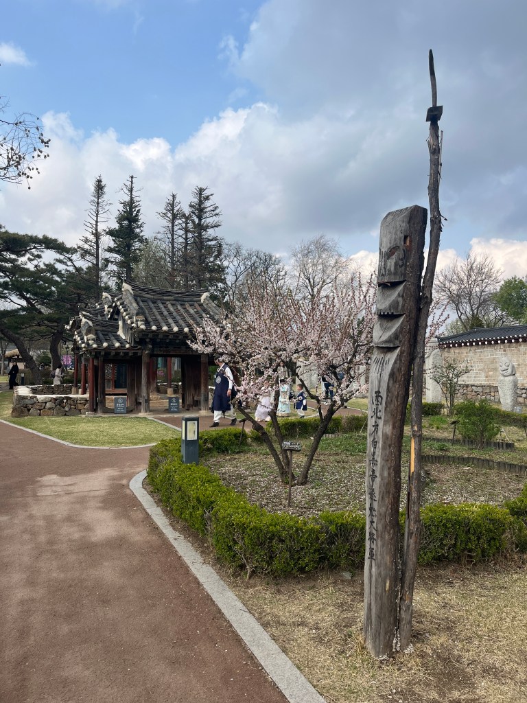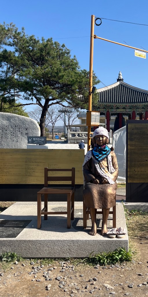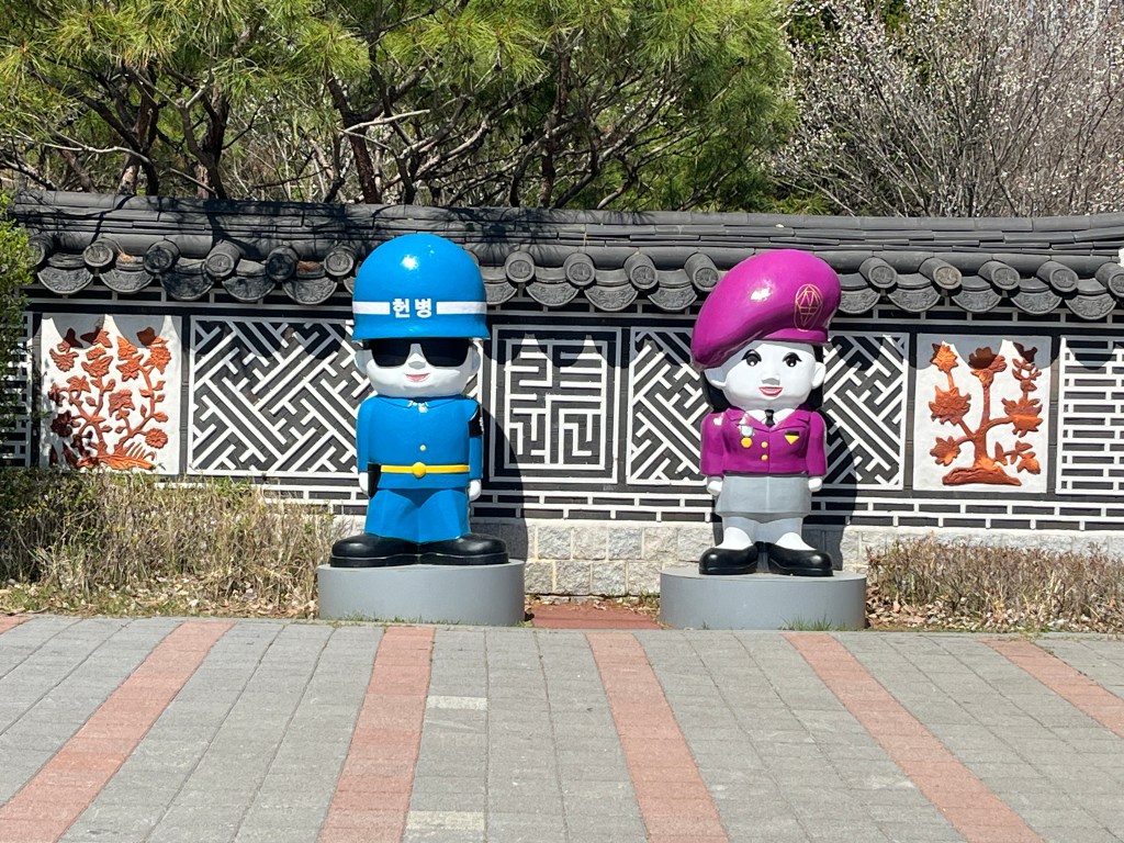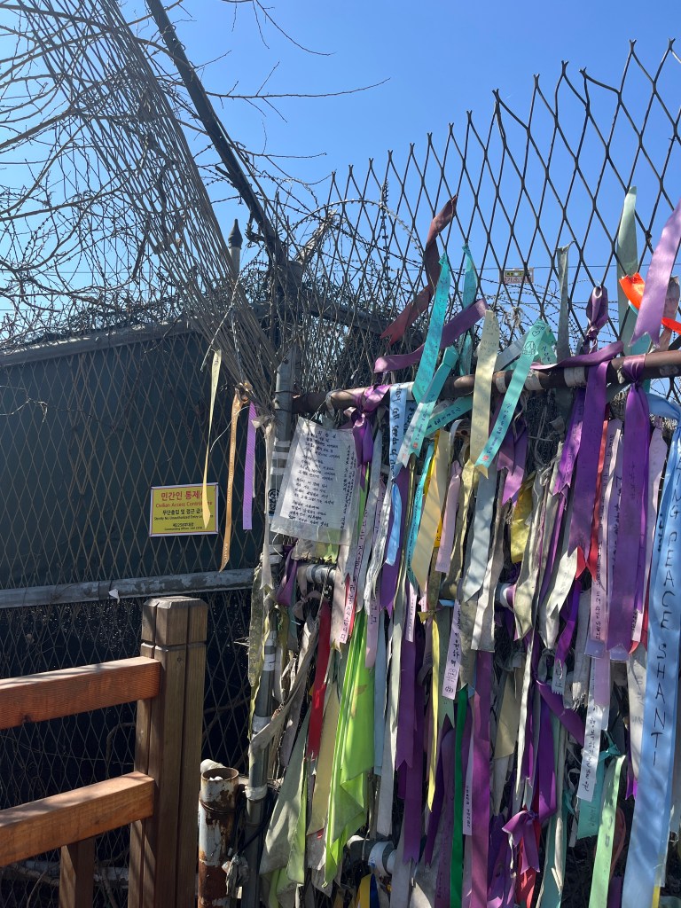 From there we went to our last stop, the Dora Observatory to look at the North Korean territory. Again, no photos allowed (and they took that seriously!), so just this shot of the beautiful blooming trees (with South Korea in the background). We spent awhile sitting there, looking out and trying to imagine what life is like on the other side, what kind of terrors happened in the zone we were currently in and looking out into, and how humans can do such things to other humans. It was during this time that Artemis II was flying around the moon, a new (old, renewed) war was (is) wagging in the Middle East and the US continues to wield its power in inhumane and destructive ways. It’s all a lot to take in sometimes, so much beauty and hope and so much terror and suffering. So much to be thankful for and so much to be scared of. But one of the reasons for taking this trip is to learn and then use that learning to inform our actions as citizens of the world. And learning about North Korea is an important step in our growth.