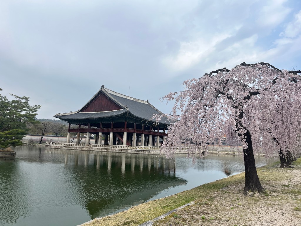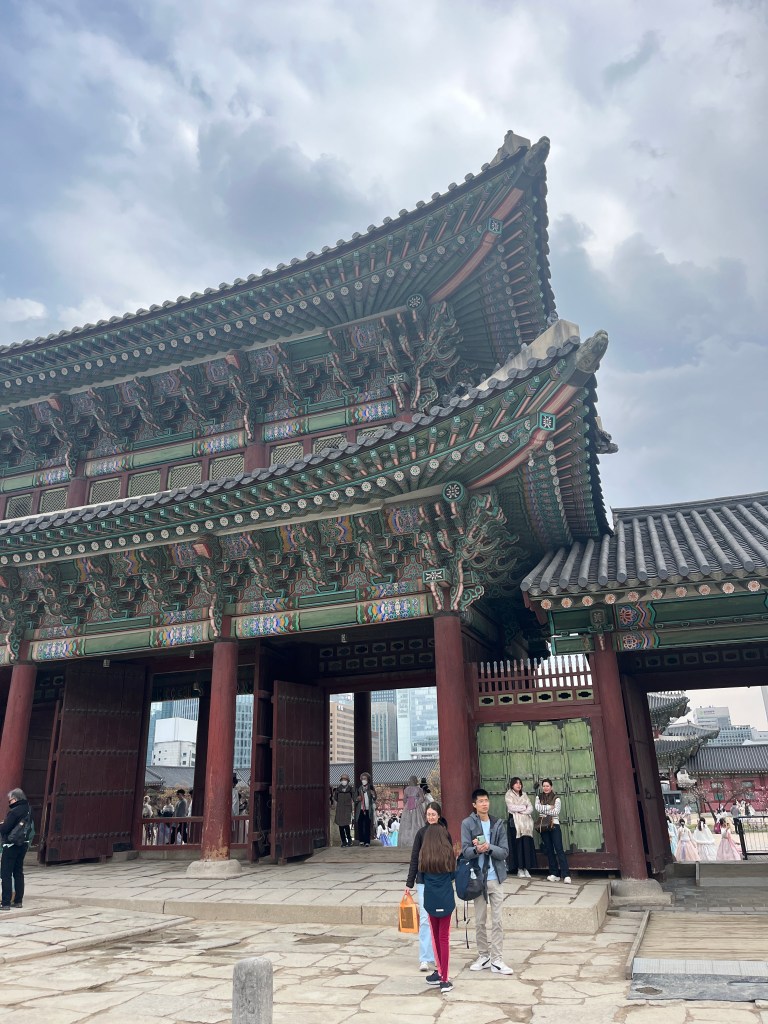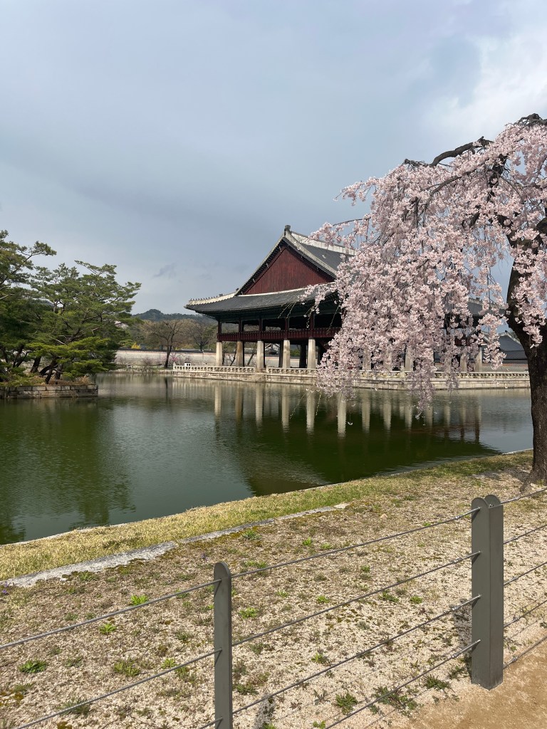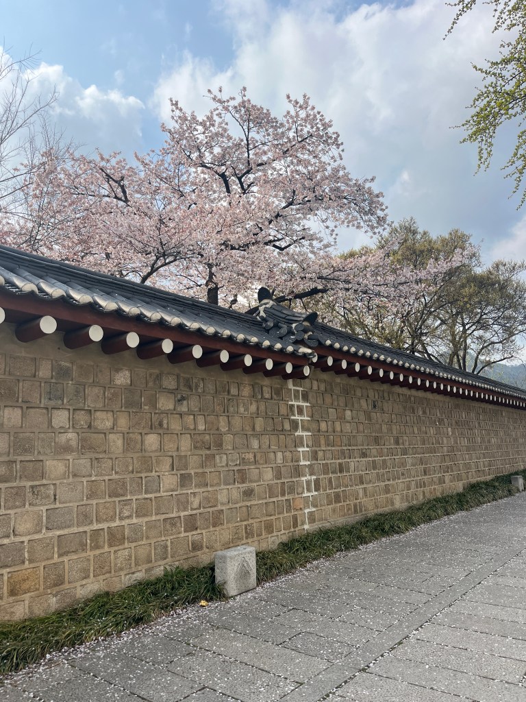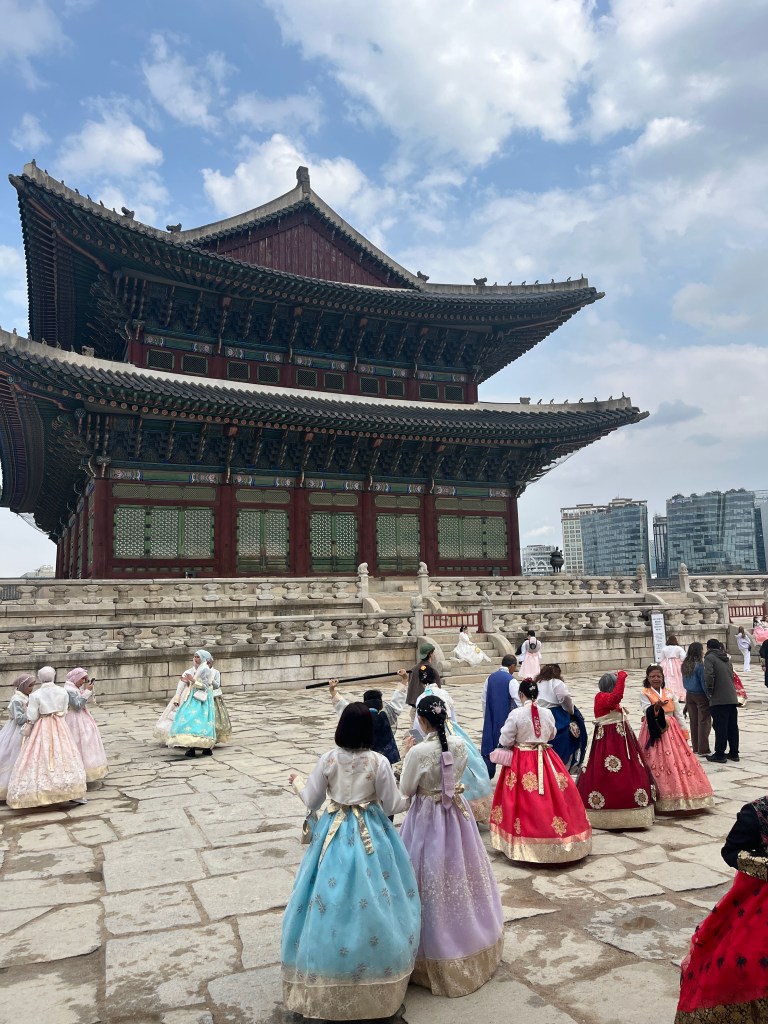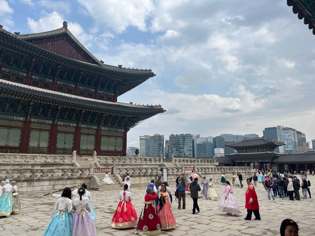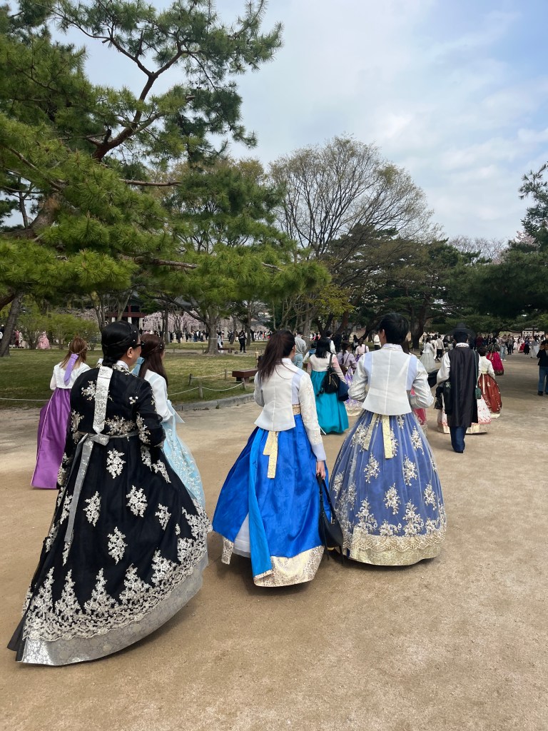 Since Olivia still wasn’t feeling well so she and Steffen stayed home another day, while the rest of us went and explored more. Our first stop was Gyeongbokgung Palace where we wandered the grounds, admired the beautiful hanboks that many tourists and locals wear to visit the palace, and caught a few more cherry blossom trees blooming.