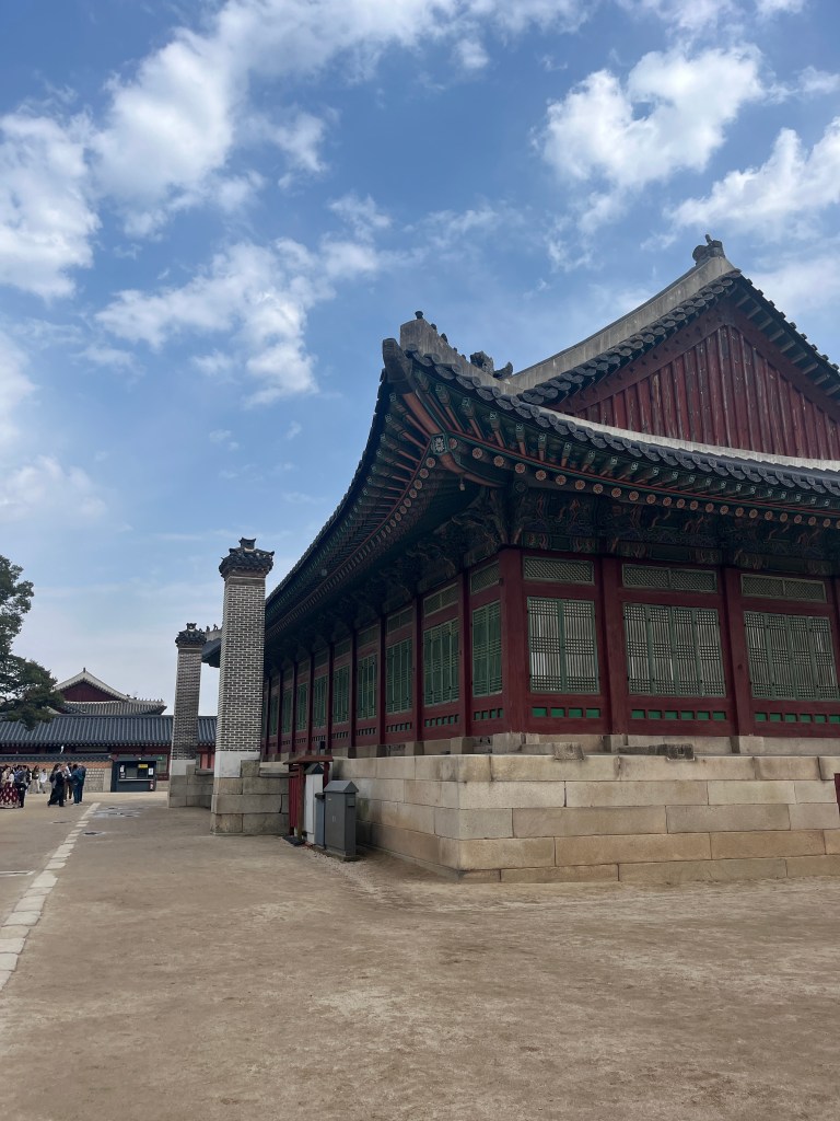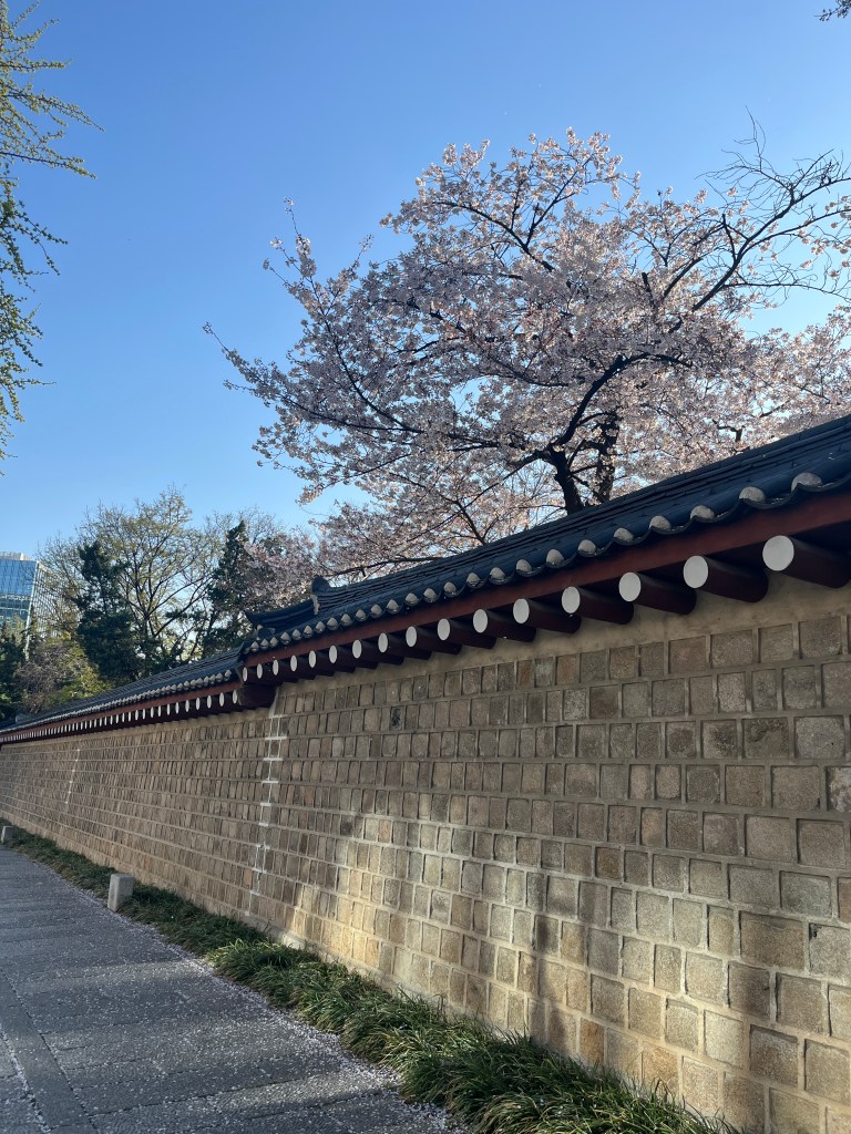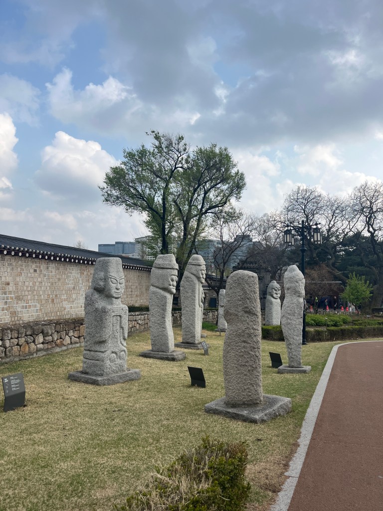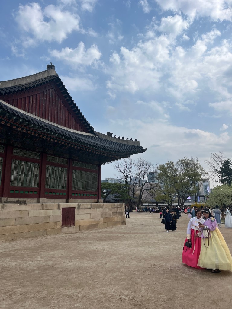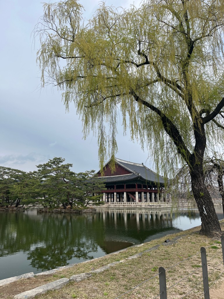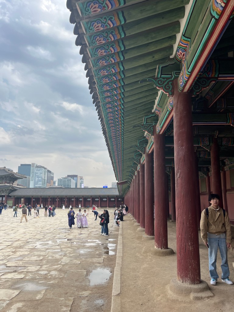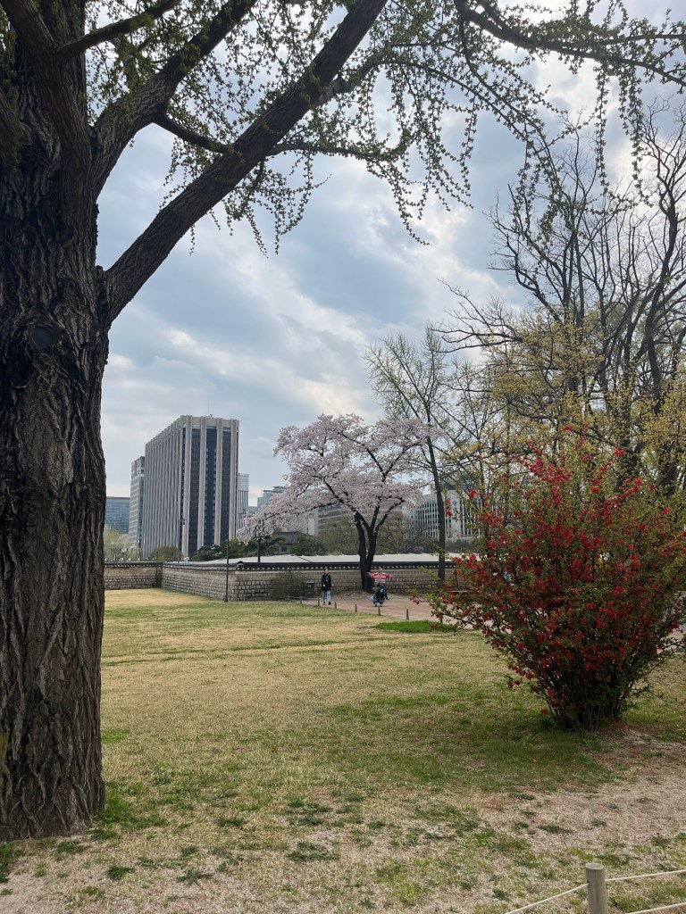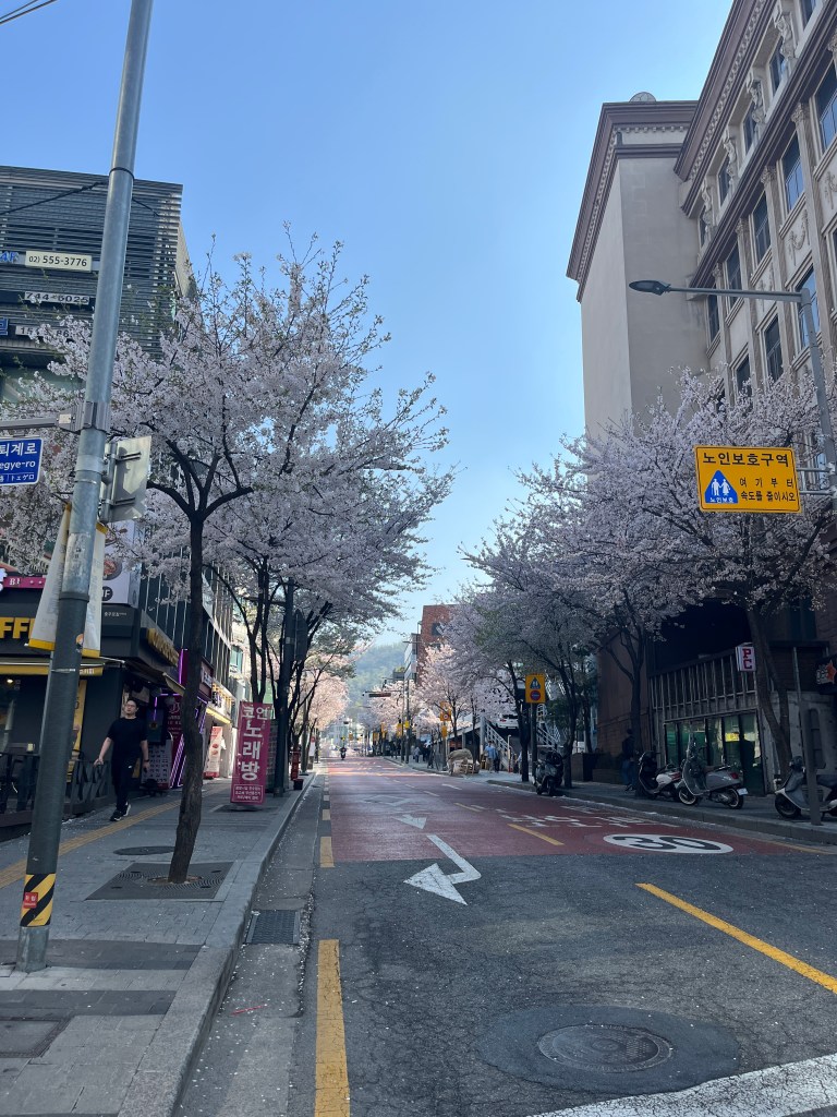 Since Olivia still wasn’t feeling well so she and Steffen stayed home another day, while the rest of us went and explored more. Our first stop was Gyeongbokgung Palace where we wandered the grounds, admired the beautiful hanboks that many tourists and locals wear to visit the palace, and caught a few more cherry blossom trees blooming.