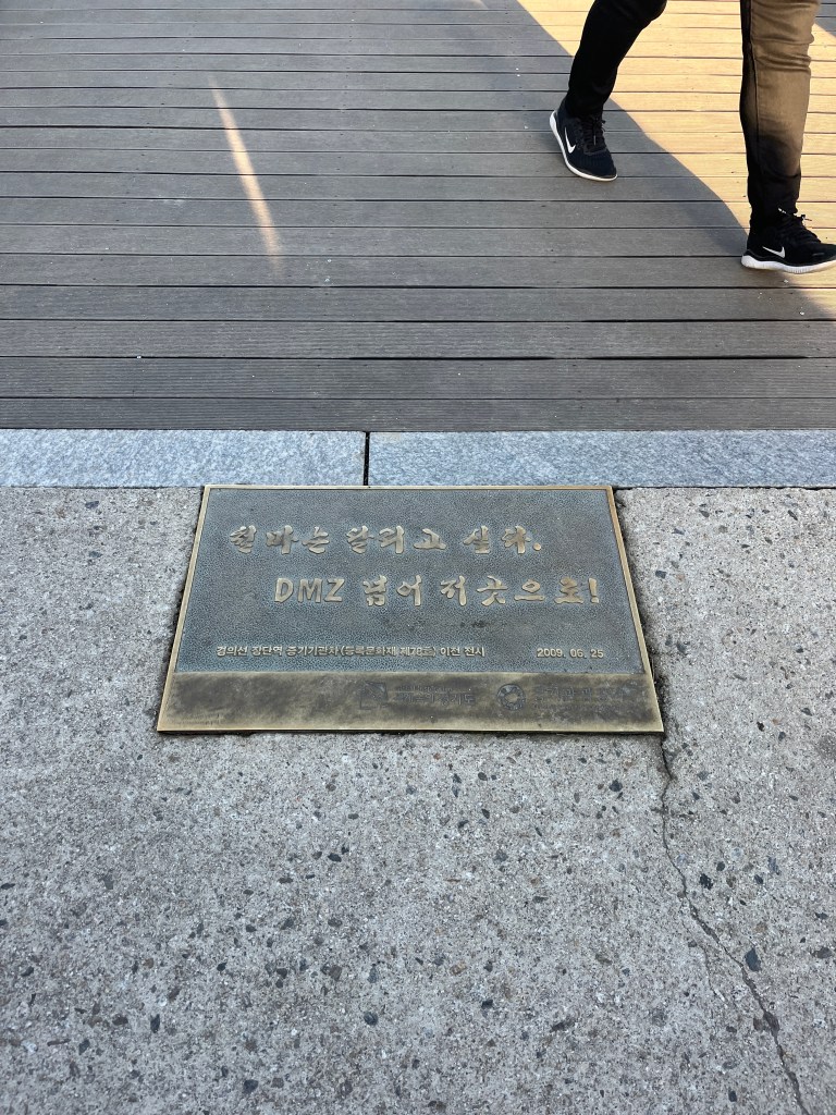 From there we drove to the 3rd Invasion Tunnel, a hidden passage once built for a surprise attack by North Korea. We were able to walk to the blockade, about 170 meters from North Korea. We were not allowed to take any photos inside the tunnel, but did snap a few outside. There was also a video presentation (that felt a bit like propaganda, to be honest) and a small museum explaining more about the tunnels the North Koreans have built after the 1953 Korean Armistice Agreement. It’s all quite complicated and ultimately devastating for the families that have been impacted on both sides and the country that would like to be one again.